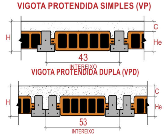 Seção transversal da Laje Protendida com Tijolo Cerâmica.