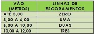 Quadro comparativo de escoramento.